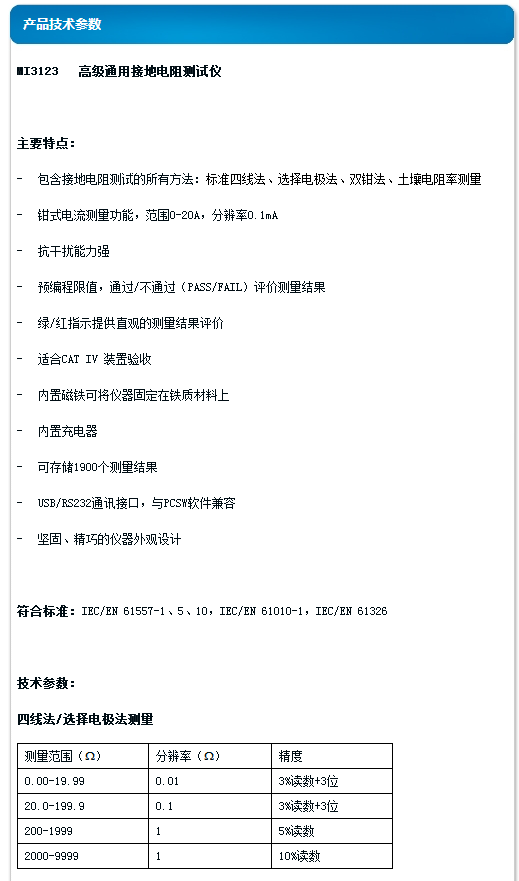 標(biāo)準(zhǔn)四線法、選擇電極法、雙鉗法、土壤電阻率測(cè)量