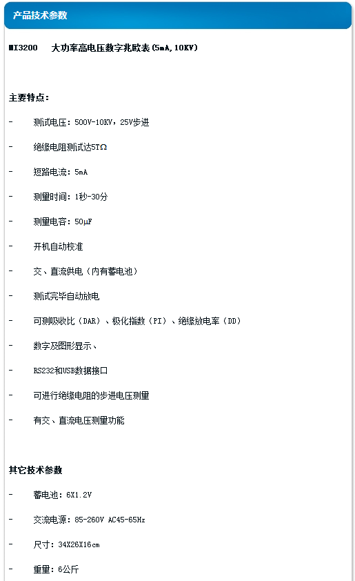 美翠 大功率高壓數(shù)字兆歐表(5MA 100KV ) MI3200