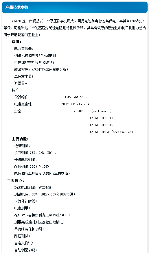 美翠 大功率高壓數(shù)字兆歐表(100KV 5MA) MI3210