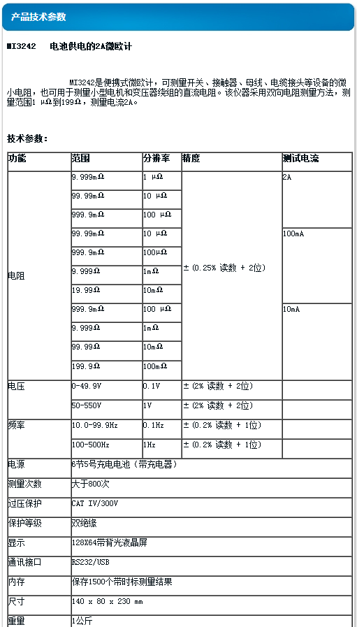 該儀器采用雙向電阻測量方法,測量范圍1歐姆到199歐姆,測量電流2A。