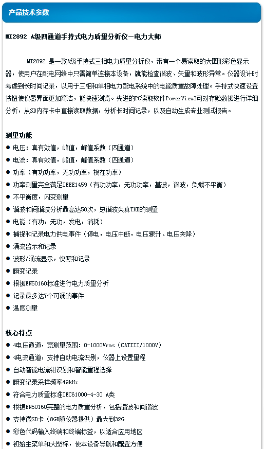 美翠 A級電能質(zhì)量分析儀 MI2892