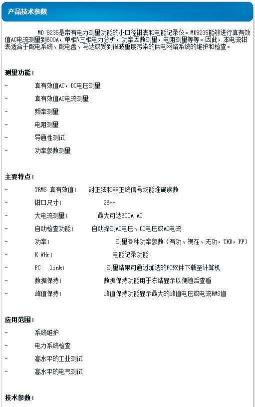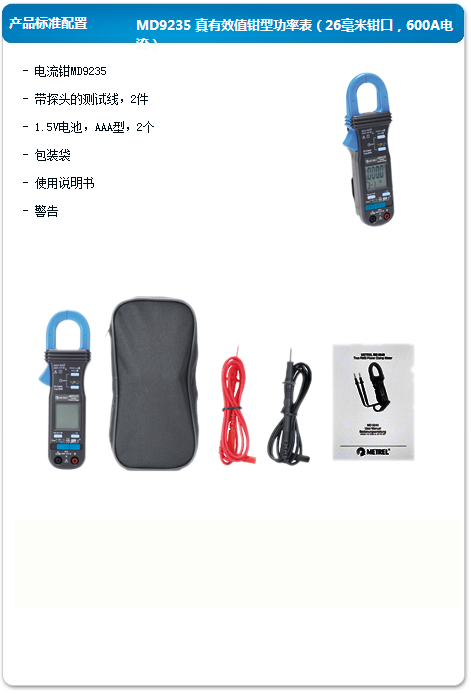 美翠 真有效值鉗型功率表(26毫米鉗口 600A電流) MD9235