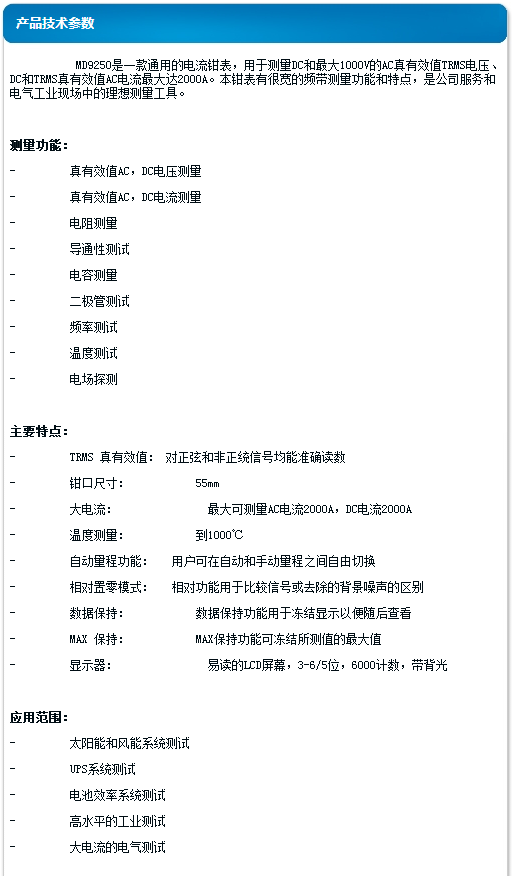 美翠 工業(yè)真有效值A(chǔ)C/DC電流鉗表 MD9250
