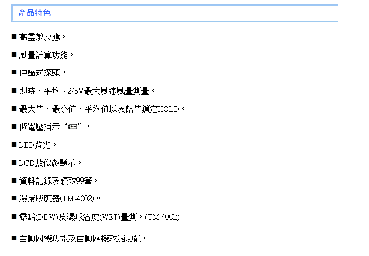臺(tái)灣泰瑪斯tenmars 風(fēng)速儀 TM4001