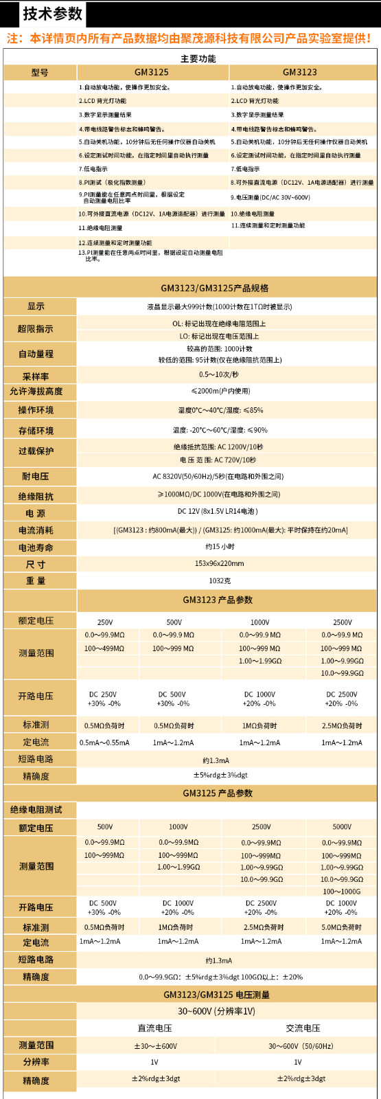 額定電壓:500V/1000V/2500V/5000V;精確度:±5%rdg±5%dgt