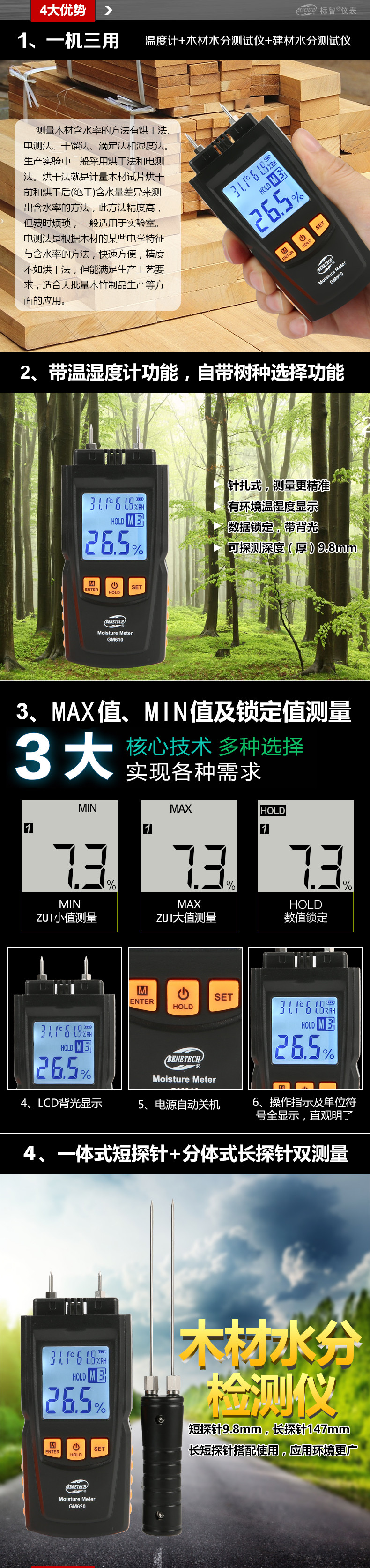 標(biāo)智BENETECH 木材水分檢測儀 GM610