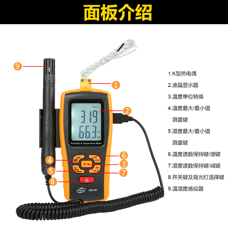 濕度測量范圍:5%RH-98%RH,