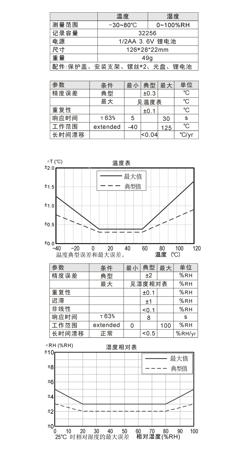 測(cè)量范圍:溫度-30-80°C,溫度:0-100%RH