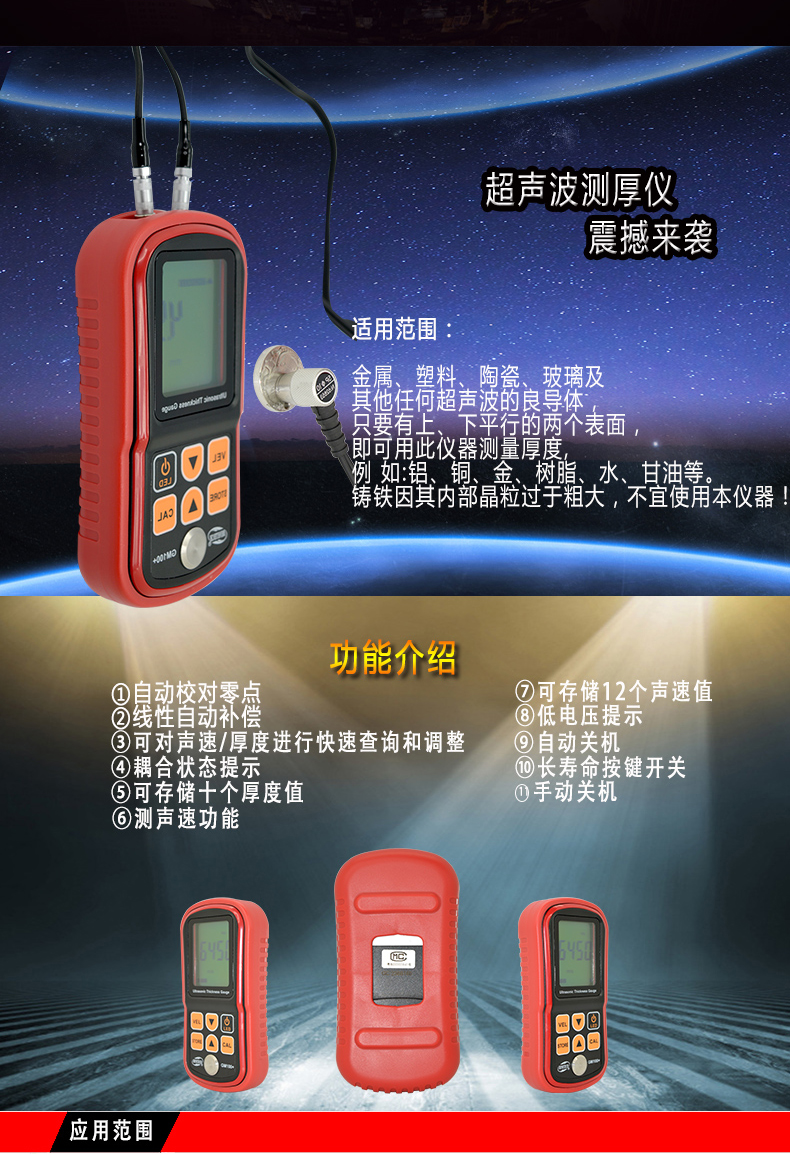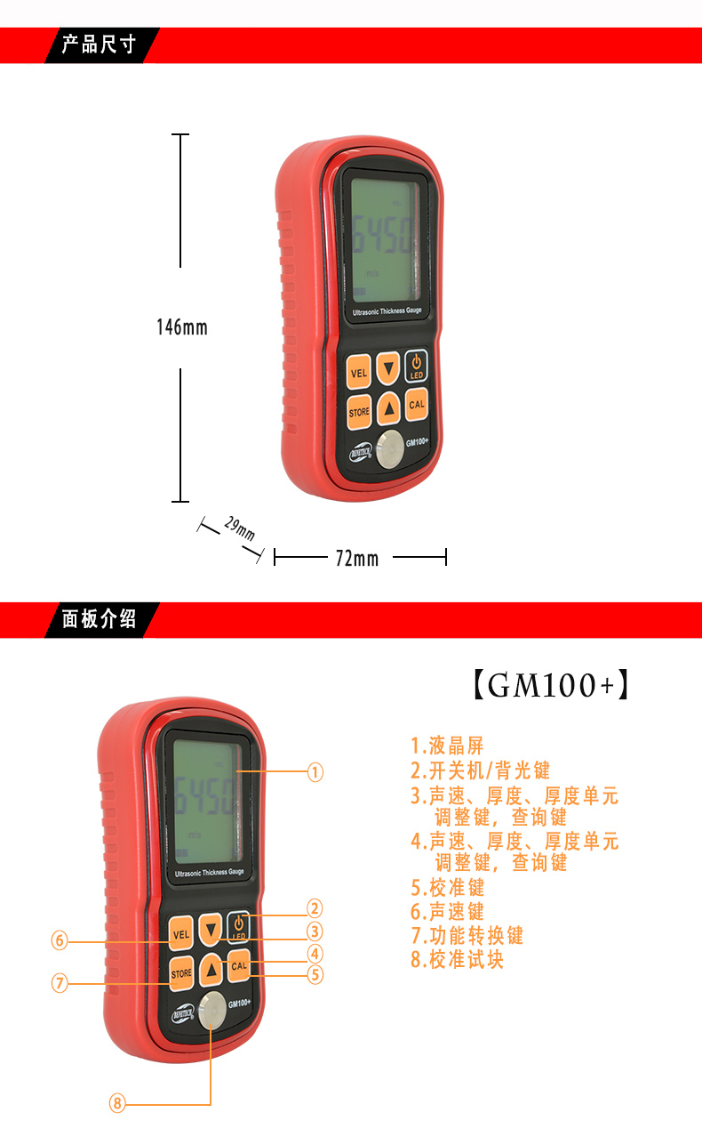 標智BENETECH 超聲波測厚器測厚表 金屬厚度測量儀GM100+