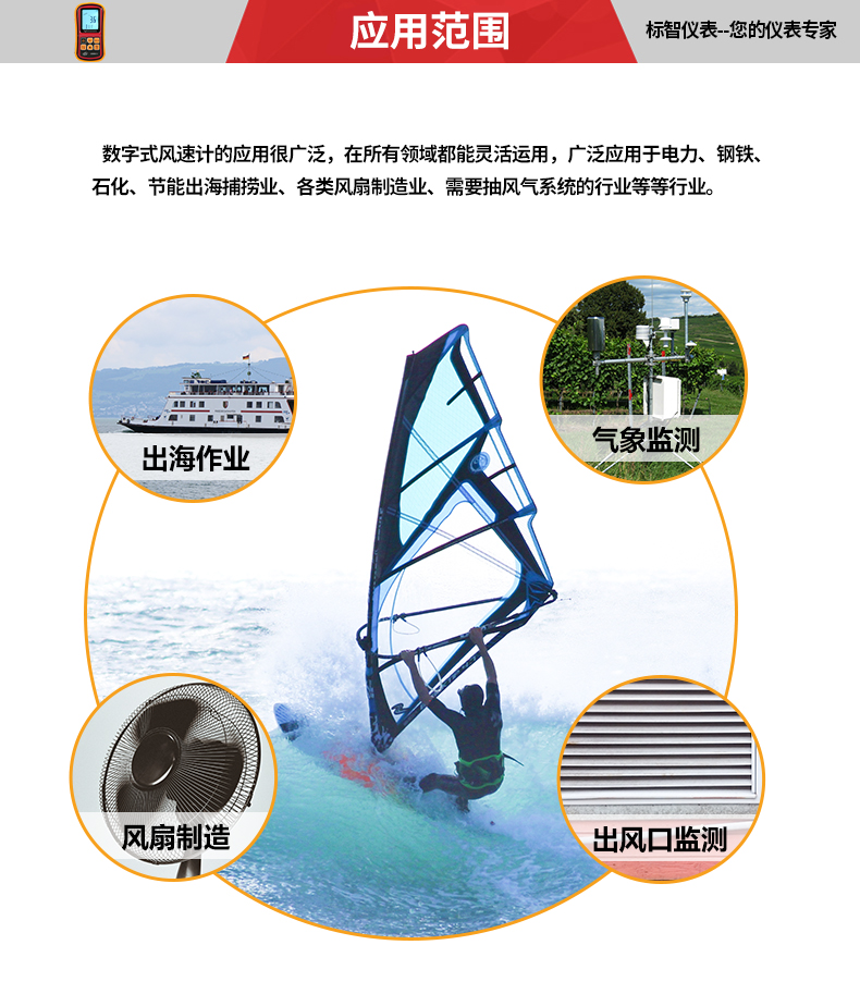 風速: 0~45米/秒, 0~140千米/小時, 0~8800英尺/分, 0~88海里/小時, 0~100英里/小時 (精確度:± 3%)