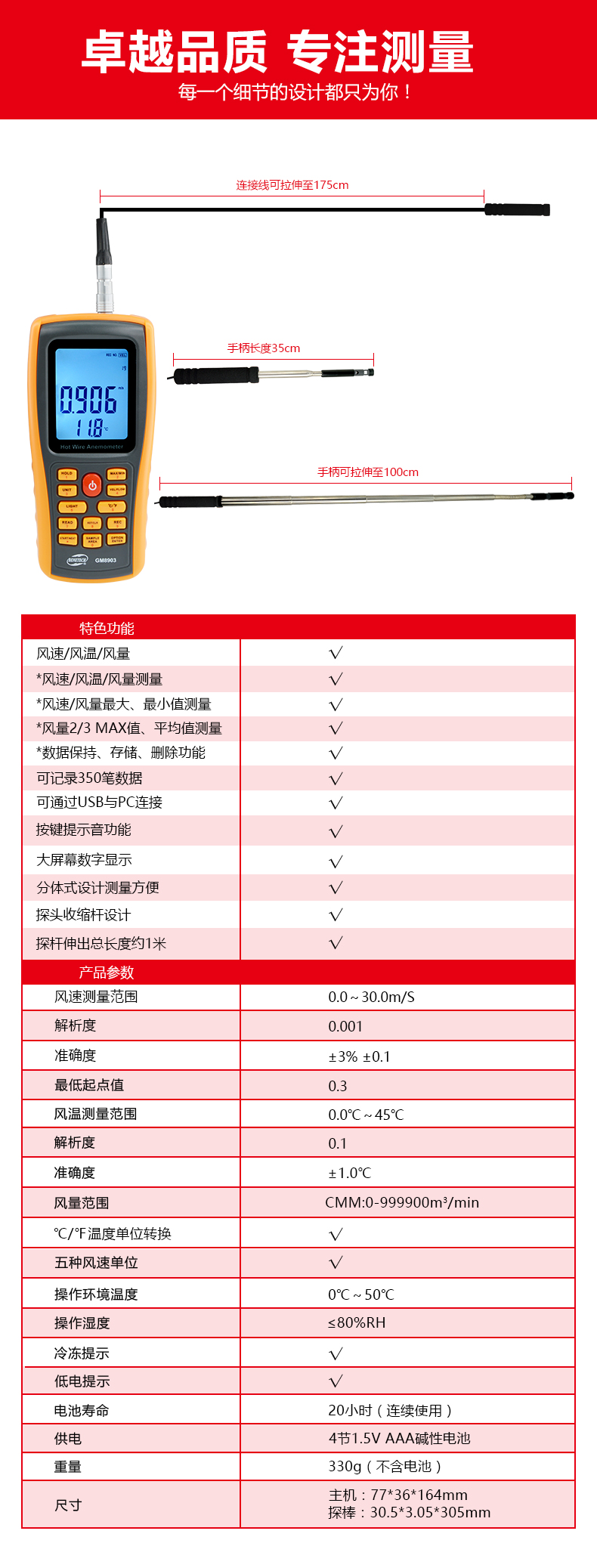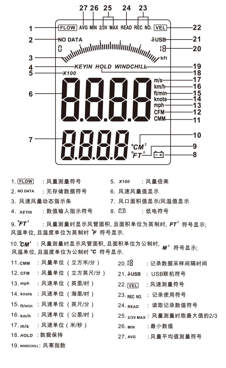 風(fēng)速: 0~30米/秒風(fēng)溫: 0~45o C, 32~113o F (精確度:± 2o C)
