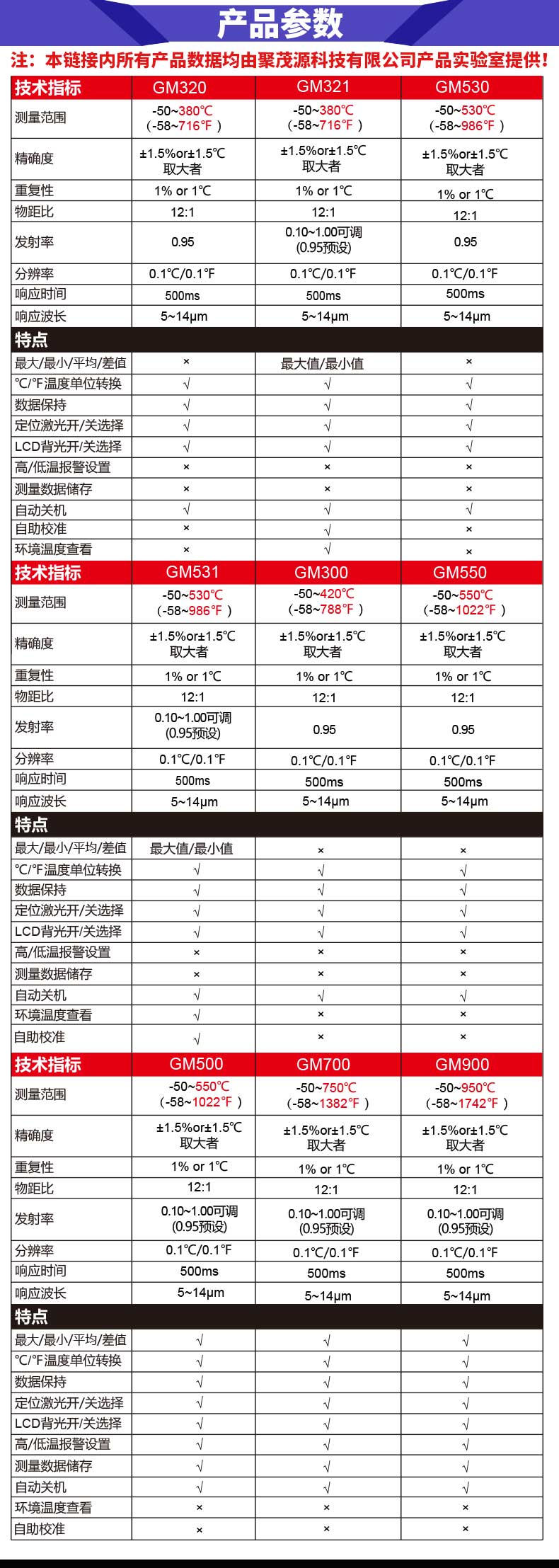 *測(cè)量范圍:-50 ~ 700℃ (-58~1292℉)