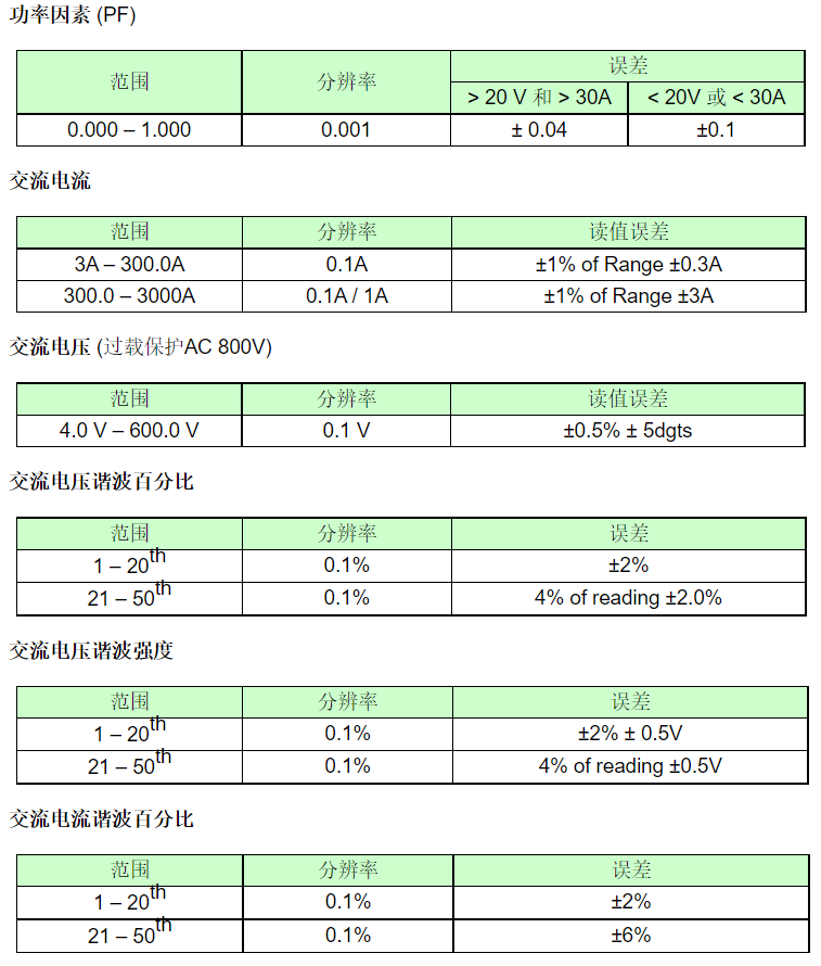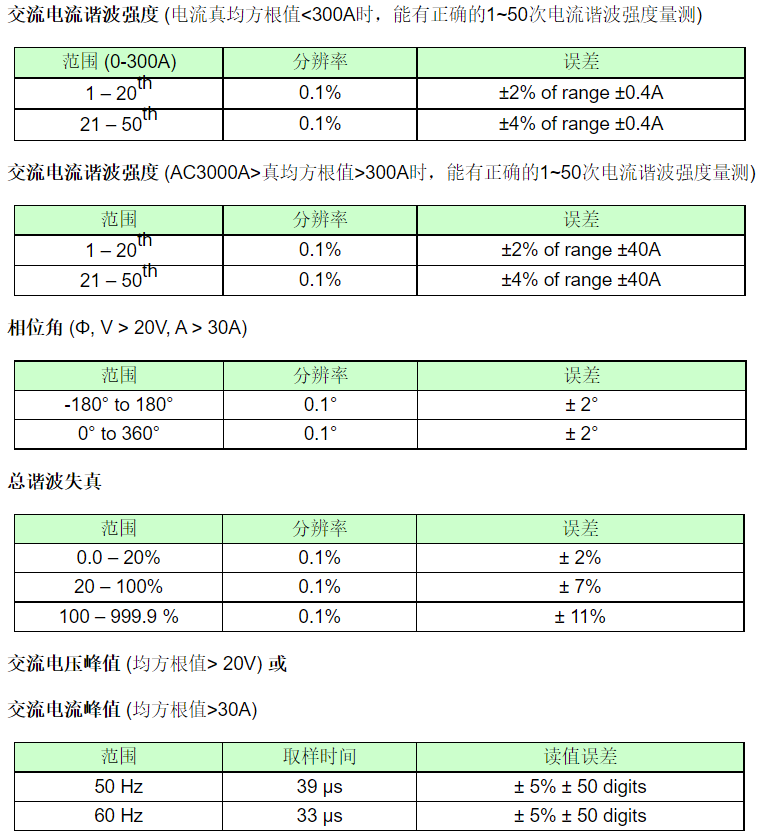 電流真均方根值,準(zhǔn)確度為讀值的 ±0.1 % 范圍內(nèi)