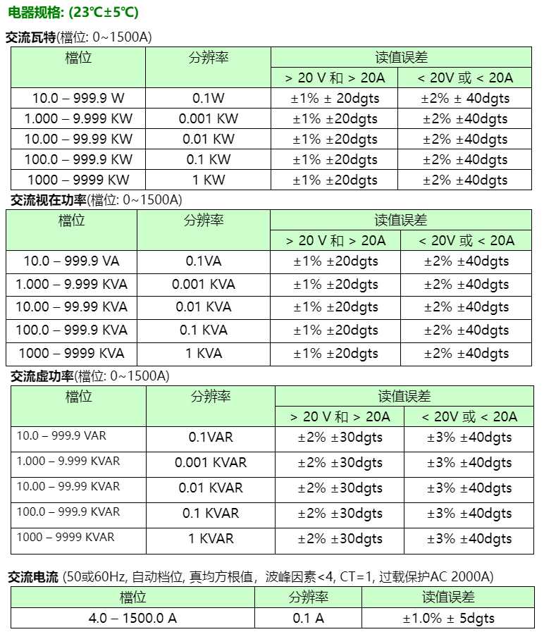 交流電流: 0~1500A。