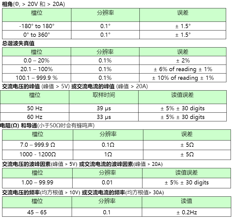 總諧波失真 (%THD-F) 以及波峰因素 (CF)。