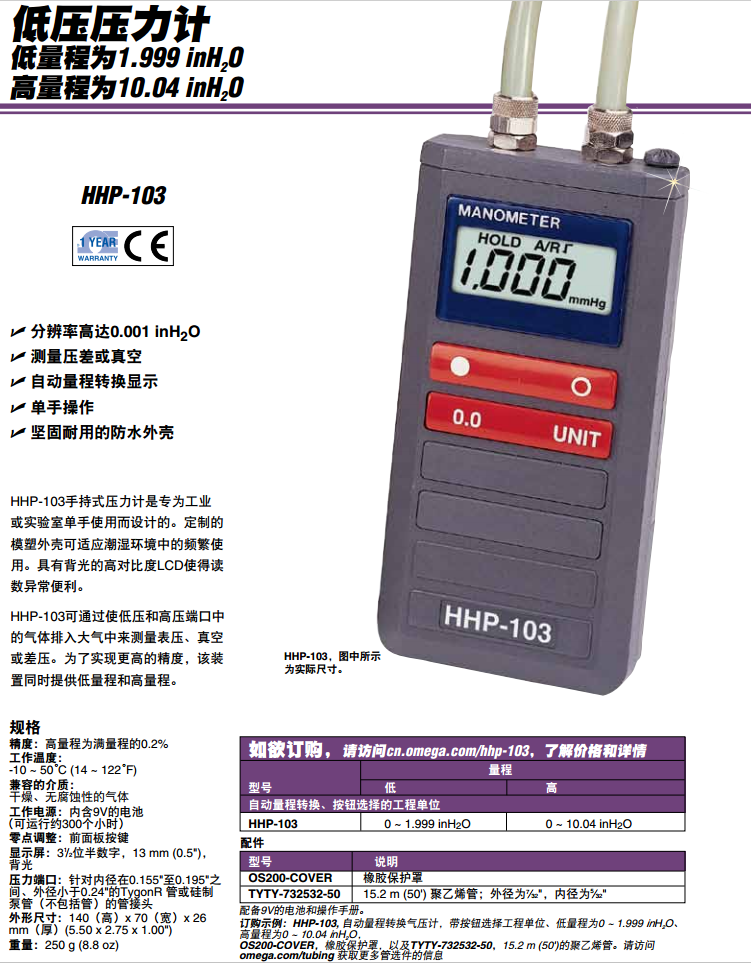 HHP-103手持式壓力計是專為工業(yè)或實驗室單手使用而設計的。定制的模塑外殼可適應潮濕環(huán)境中的頻繁使用。具有背光的高對比度LCD使得讀數(shù)異常便利。