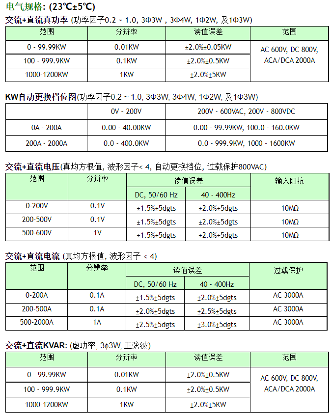 交流+直流真實(shí)功率, 及交流電壓/電流真均方根值