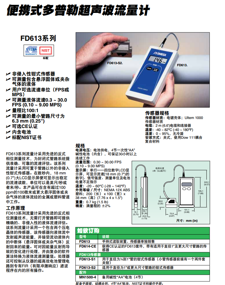 便攜式多普勒超聲波流量計FD613系列