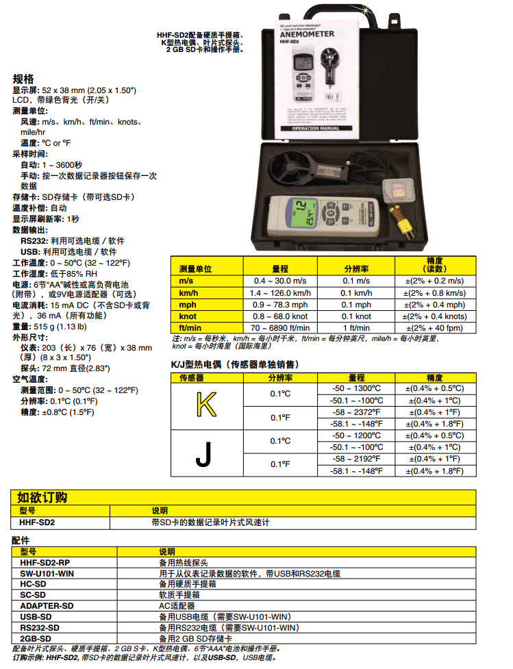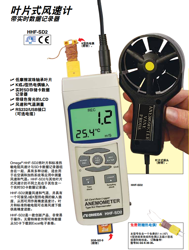 美國omega 葉片式風(fēng)速計(jì)HHF-SD2