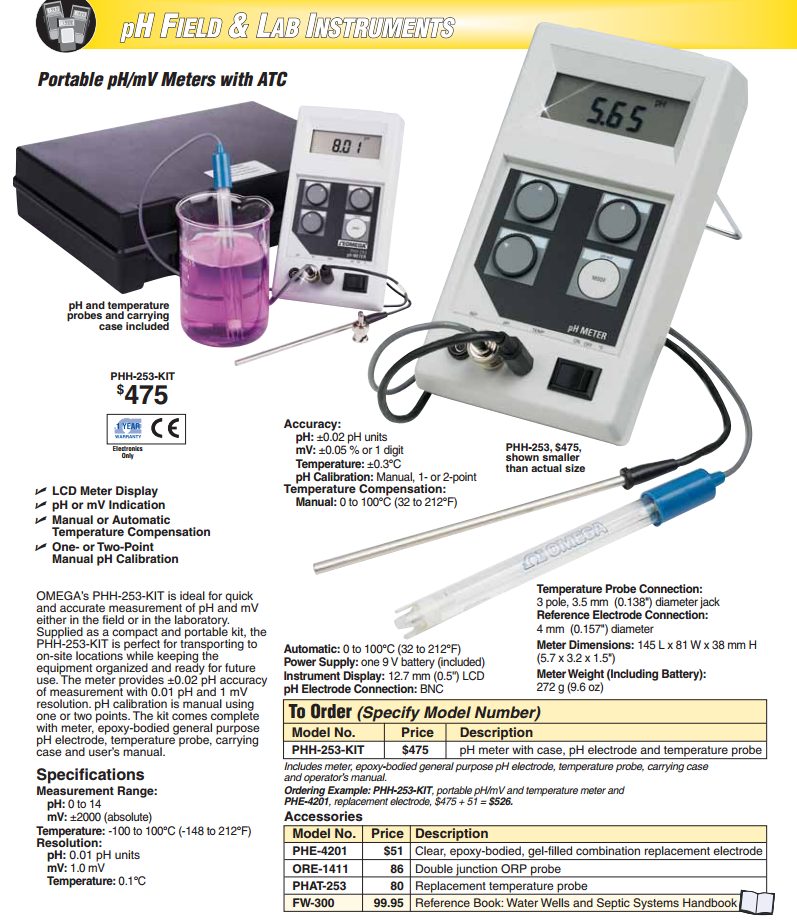 LCD Meter Display pH or mV Indication Manual or Automatic Temperature Compensation
