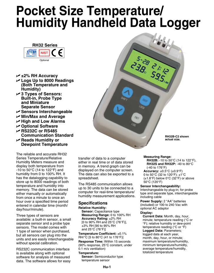 ±2% RH AccuracyLogs Up to 8000 Readings (Both Temperature and Humidity)