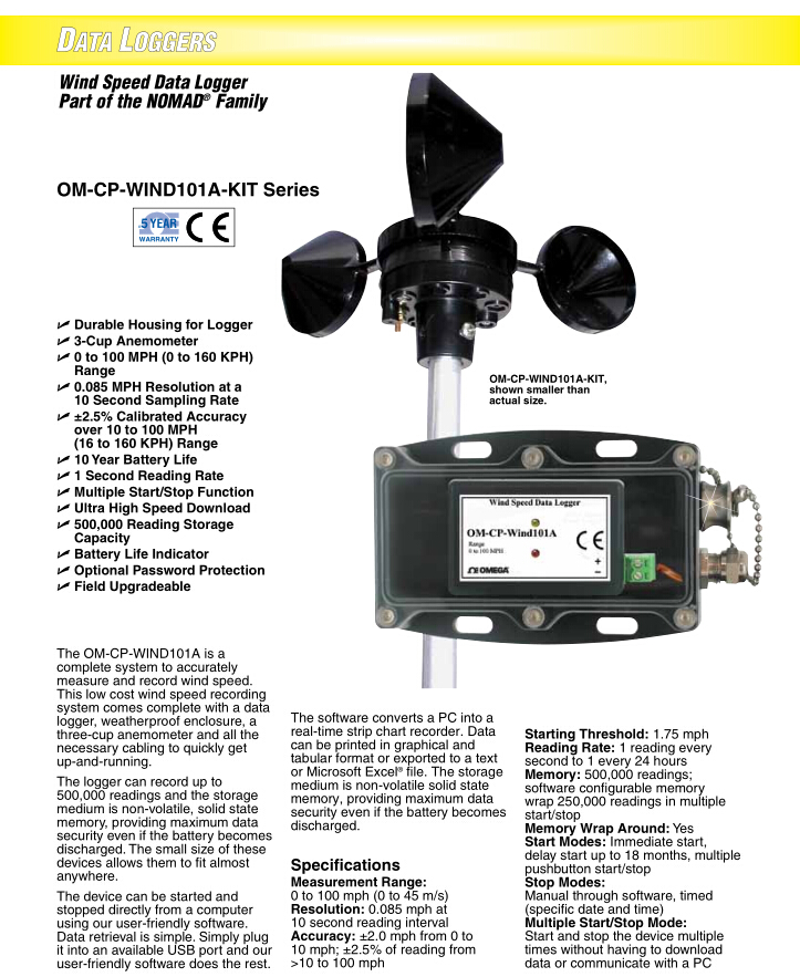風(fēng)速數(shù)據(jù)記錄器OM-CP-WIND101A-KIT Series