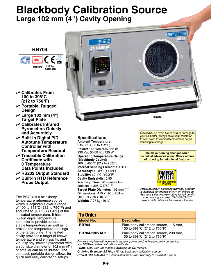 美國omega omega 紅外線校準器BB704 and BB704-230VAC