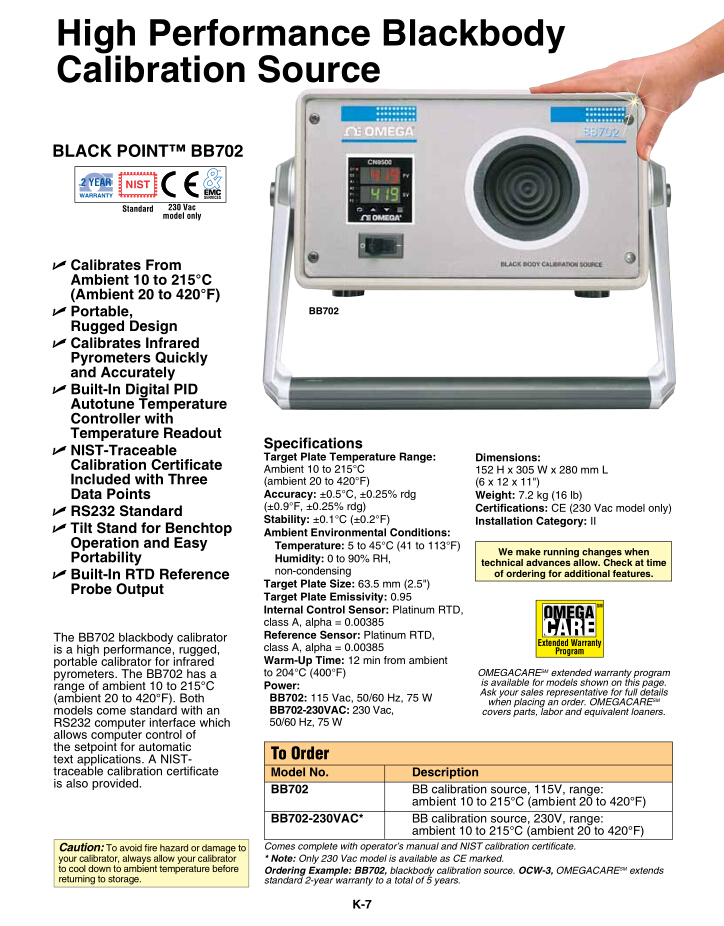 美國(guó)omega 紅外線校準(zhǔn)器B702 and BB702-230VAC