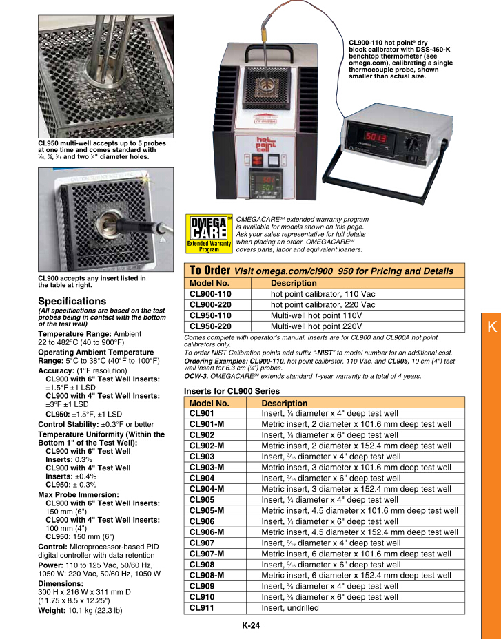美國omega 干體式探頭校準(zhǔn)器CL950