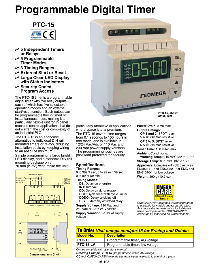 美國(guó)omega 可編程數(shù)字定時(shí)器PTC-15