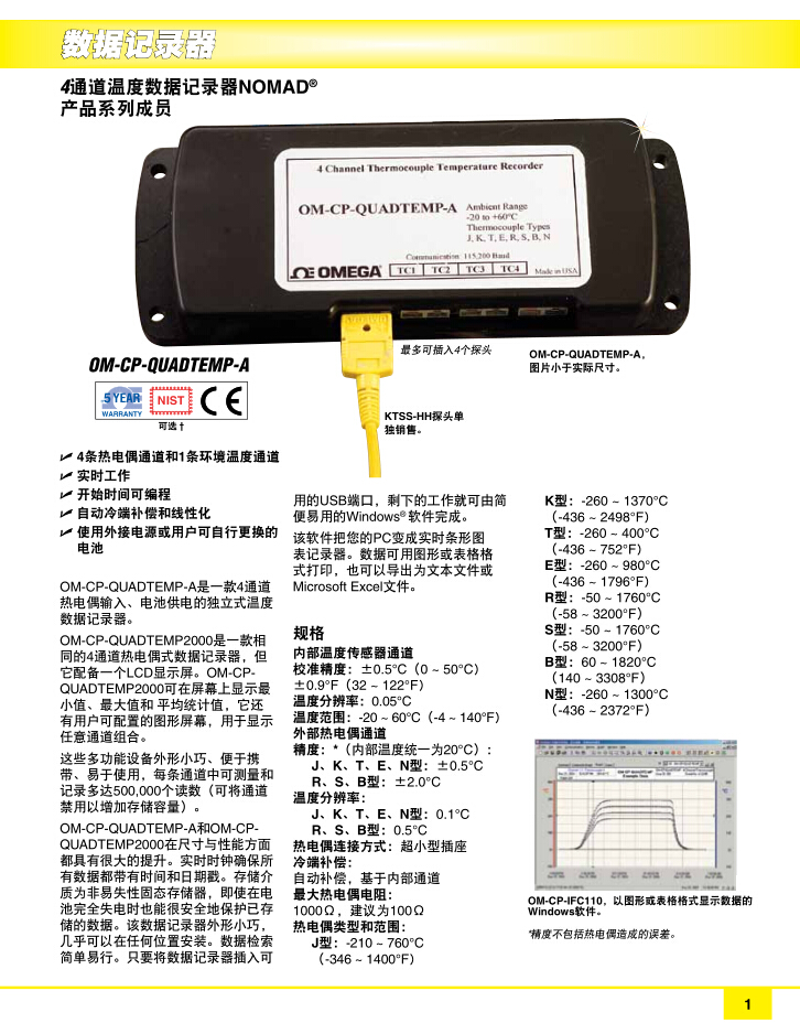 OM-CP-QUADTEMP-A是一款4通道熱電偶輸入、電池供電的獨(dú)立式溫度數(shù)據(jù)記錄器。