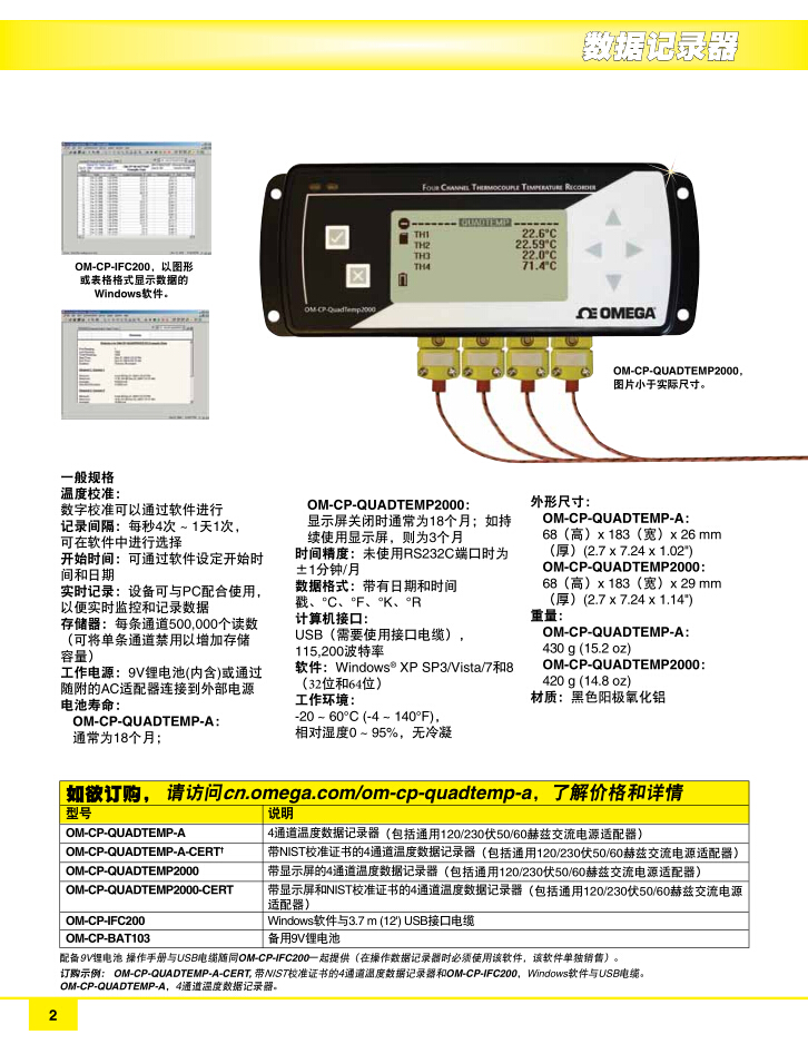 OM-CP-QUADTEMP-A和OM-CP-QUADTEMP2000在尺寸與性能方面都具有很大的提升。實(shí)時(shí)時(shí)鐘確保所有數(shù)據(jù)都帶有時(shí)間和日期戳。存儲(chǔ)介質(zhì)為非易失性固態(tài)存儲(chǔ)器,即使在電池完全失電時(shí)也能很安全地保護(hù)已存儲(chǔ)的數(shù)據(jù)。該數(shù)據(jù)記錄器外形小巧,幾乎可以在任何位置安裝。數(shù)據(jù)檢索簡單易行。只要將數(shù)據(jù)記錄器插入可用的USB端口,剩下的工作就可由簡便易用的Windows? 軟件完成。