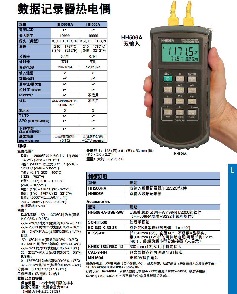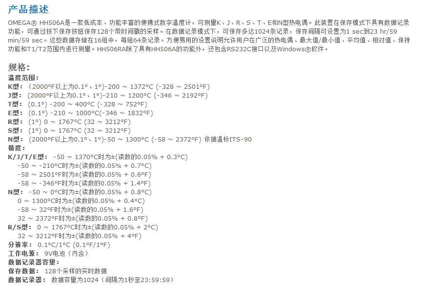 美國omega 手持式熱電偶溫度計(jì)HH506RA雙輸入