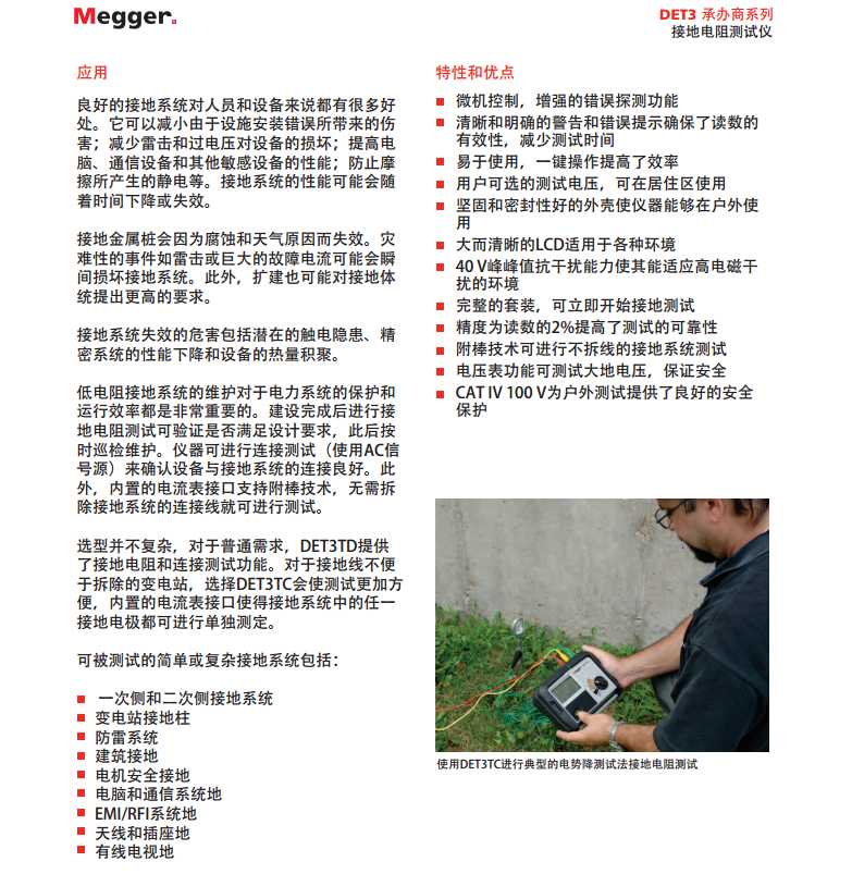 美國MEGGER 三極接地電阻測試儀 DET3TD