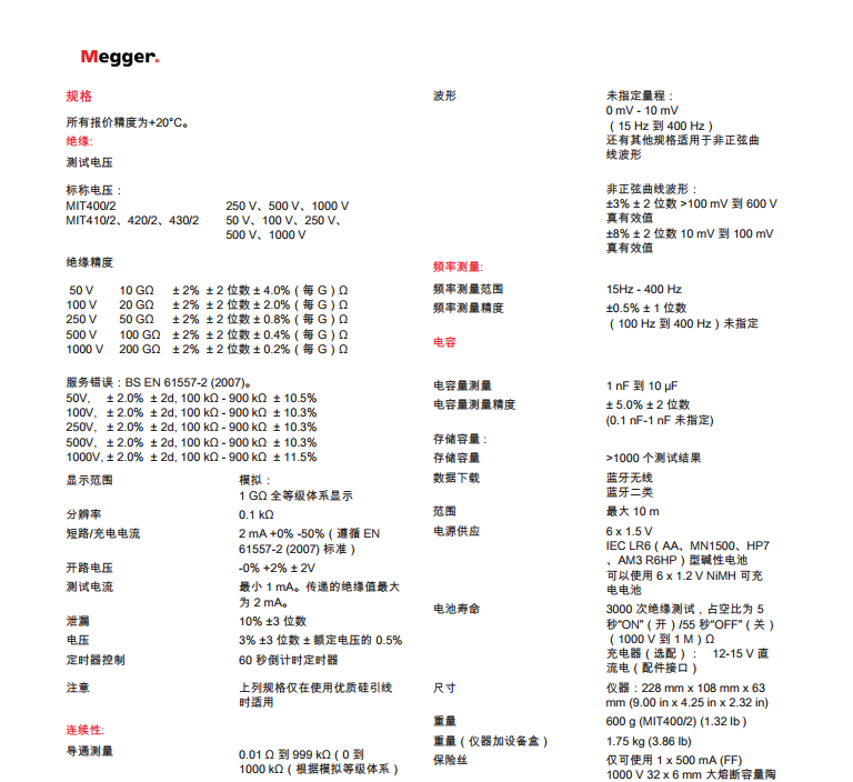 美國MEGGER CAT IV 絕緣電阻和連續(xù)性測試儀 MIT420/2