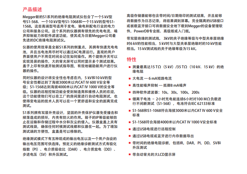 美國(guó)MEGGER S1-1068 10KV高性能絕緣電阻測(cè)試儀