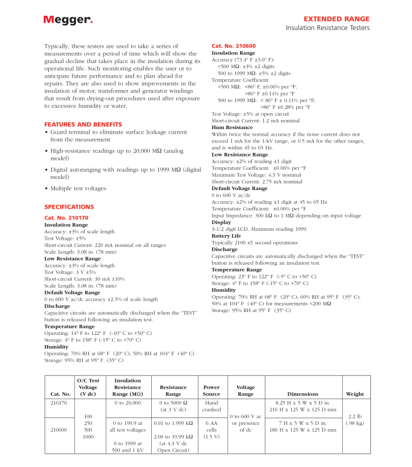美國MEGGER 擴(kuò)展范圍的絕緣電阻測(cè)試儀 210600