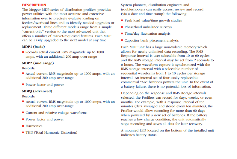 美國(guó)MEGGER 高壓架空線路電流表和配電線路分析器 MDP系列