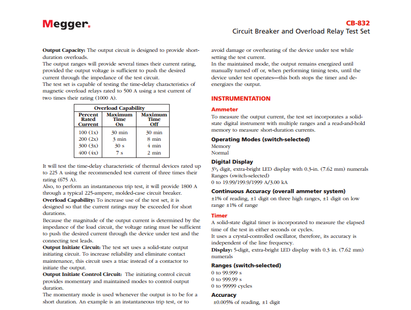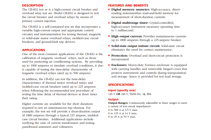 美國(guó)MEGGER 斷路器及過(guò)載繼電器測(cè)試儀 CB-832