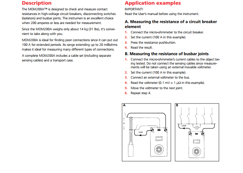 測(cè)量斷路器、隔離開(kāi)關(guān)、母線聯(lián)接、安全設(shè)備等的連接電阻