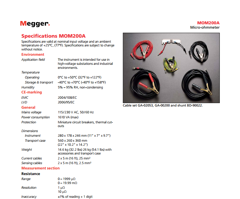 美國(guó)MEGGER 200 A微歐表 MOM200A