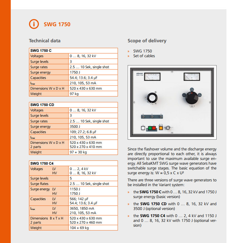 美國MEGGER 沖擊波發(fā)生器 SWG 1750