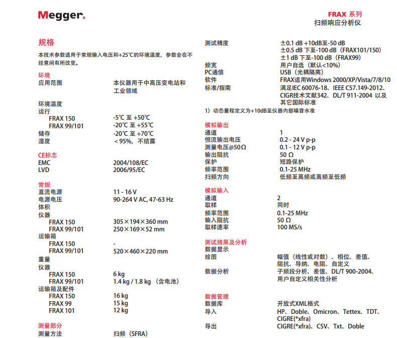 美國MEGGER 掃頻響應(yīng)分析儀 Frax150