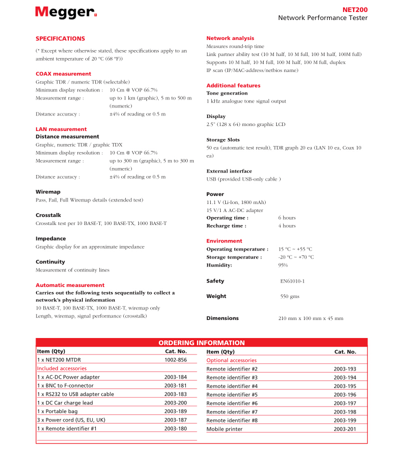 美國MEGGER 網(wǎng)絡以太網(wǎng)測試儀 NET200
