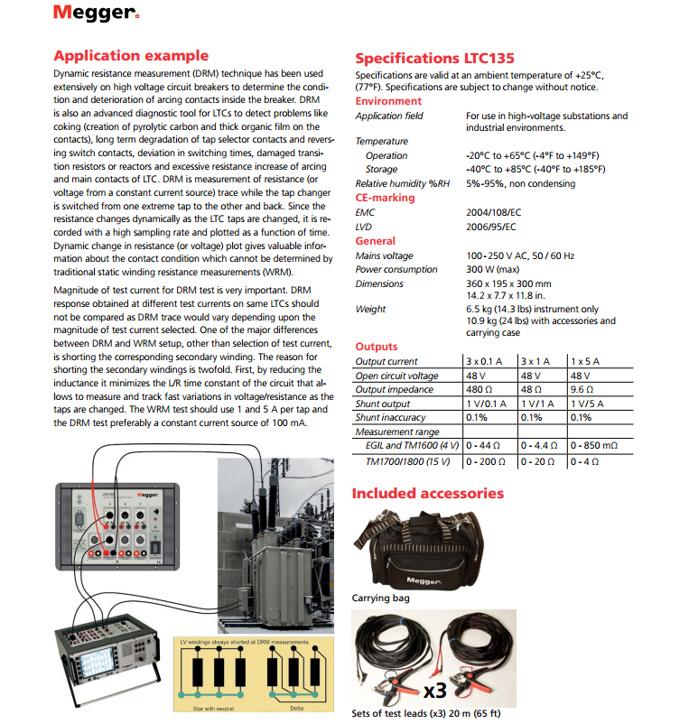 美國MEGGER 有載分接開關(guān)測試電源 LTC135