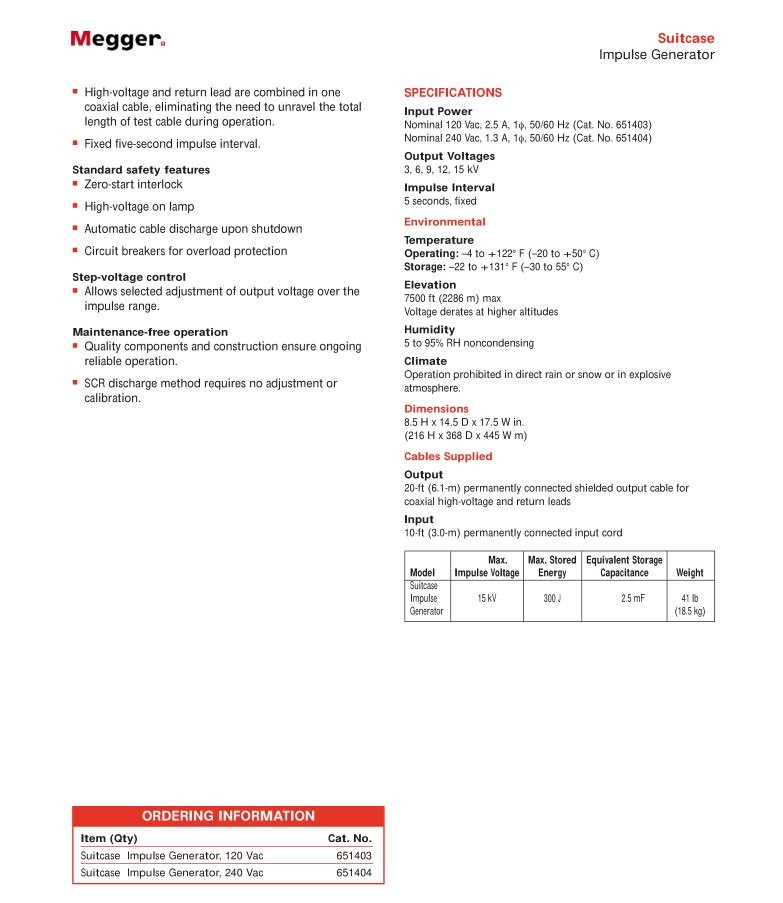 美國MEGGER 箱形的脈沖發(fā)生器 120/240 VAC