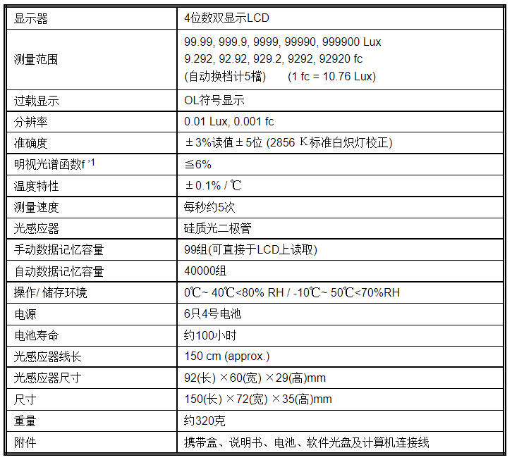 時(shí)間控制自動(dòng)鎖定功能,而不受測量者之干擾光源而影響照度測量值。