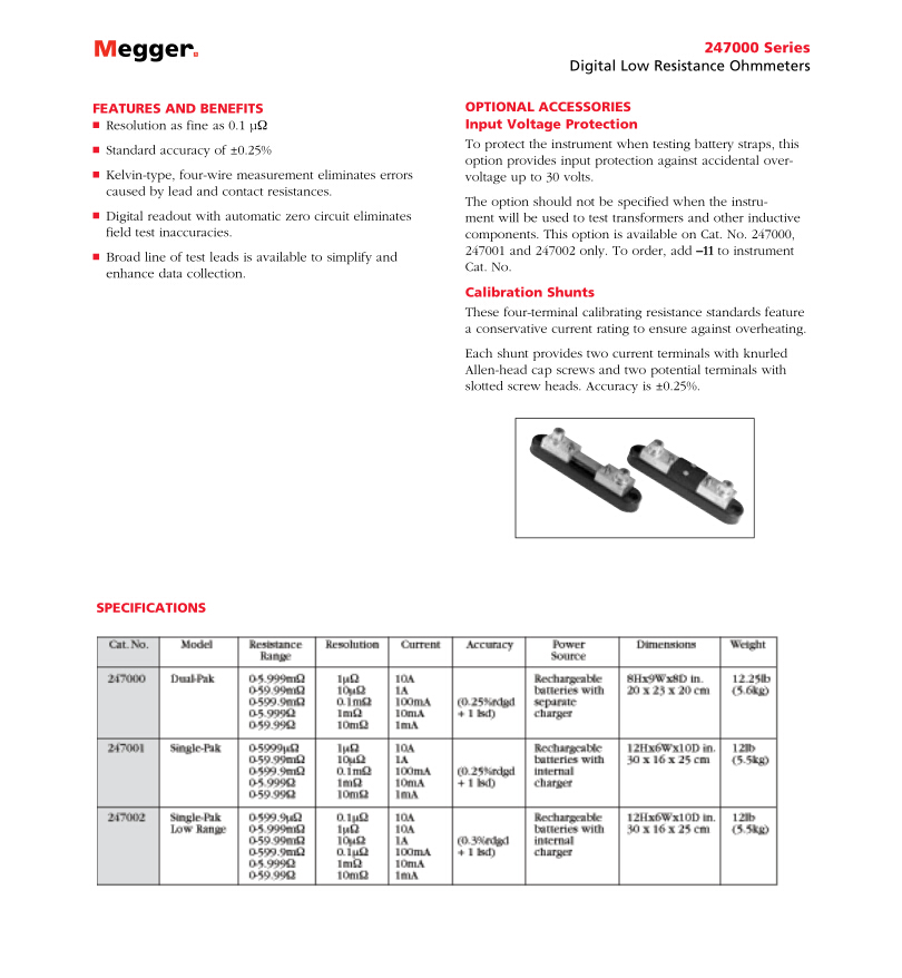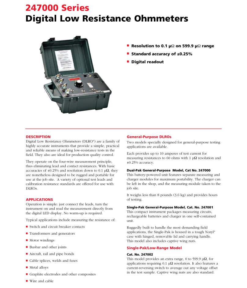 美國(guó)MEGGER 數(shù)字式低阻值歐姆表 DLRO247000