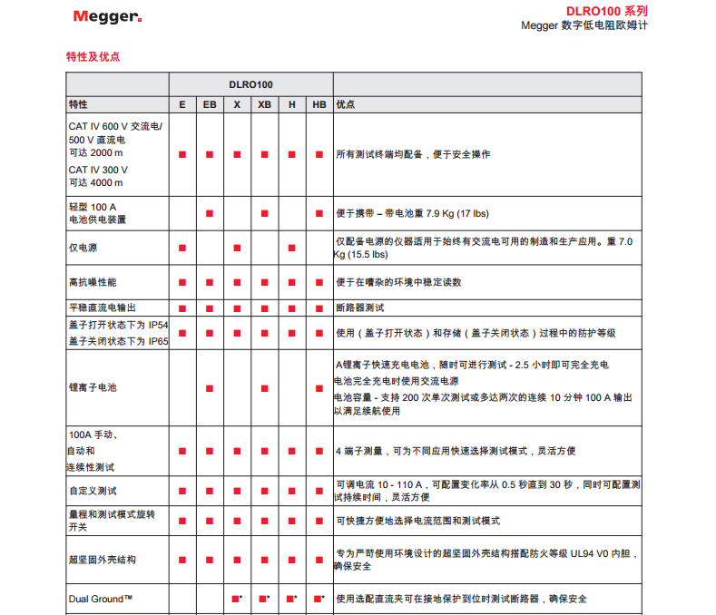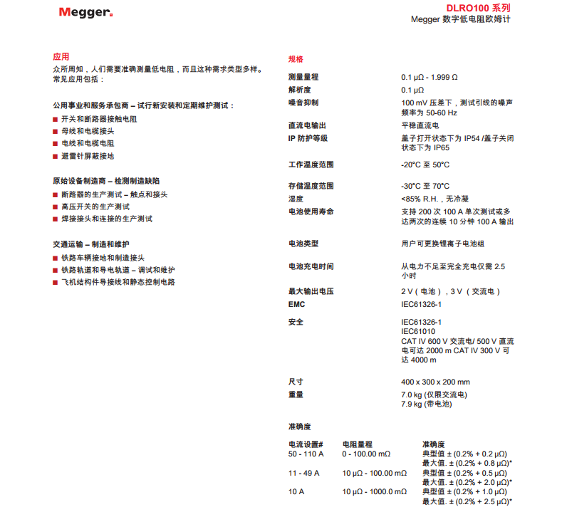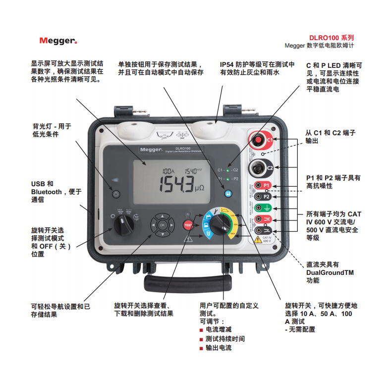 美國MEGGER 100 A高度便攜微歐表 DLRO100X