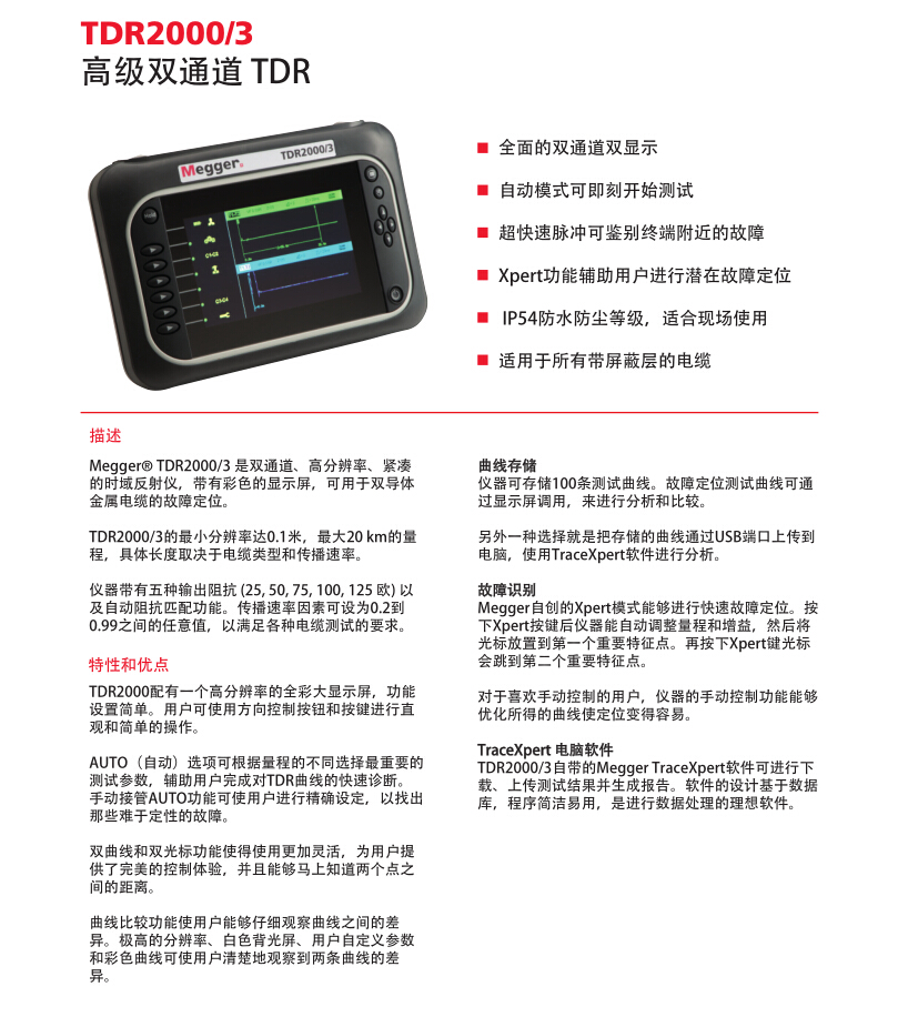 美國MEGGER 先進的雙通道時域反射計 TDR2000/3
